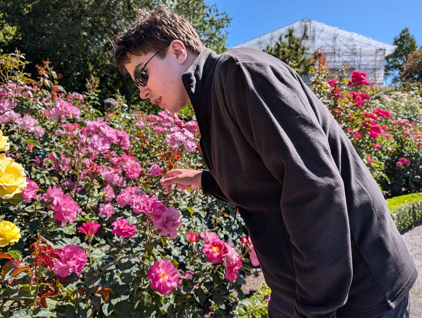 Hagley Park is the beloved centerpiece of Christchurch. Its botanical gardens are a stunning display of New Zealand’s diverse flora. Iden just had to stop and smell the roses (more on that in the podcast).